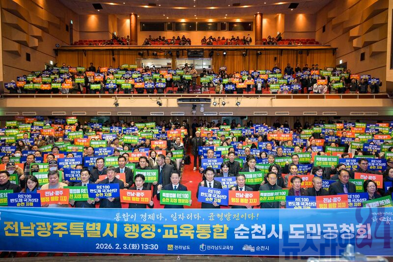 순천시는 전라남도와 함께 3일 순천문화예술회관에서 전남광주특별시 행정·교육 통합 도민 공청회를 개최하고, 통합 추진의 방향과 핵심 과제를 시민과 함께 논의했다.