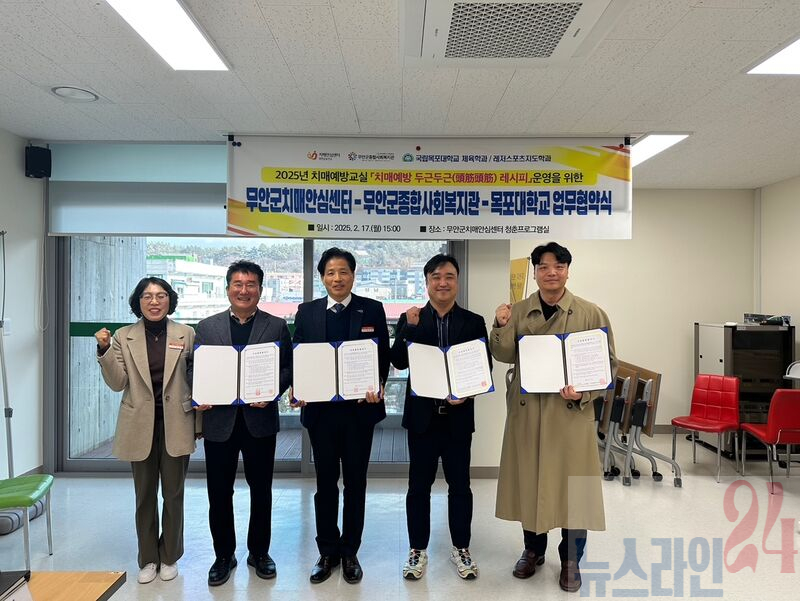무안군, 치매 관리 강화를 위한 업무협약 체결 무안군치매안심센터·무안군종합사회복지관·목포대학교 3개 기관 협약