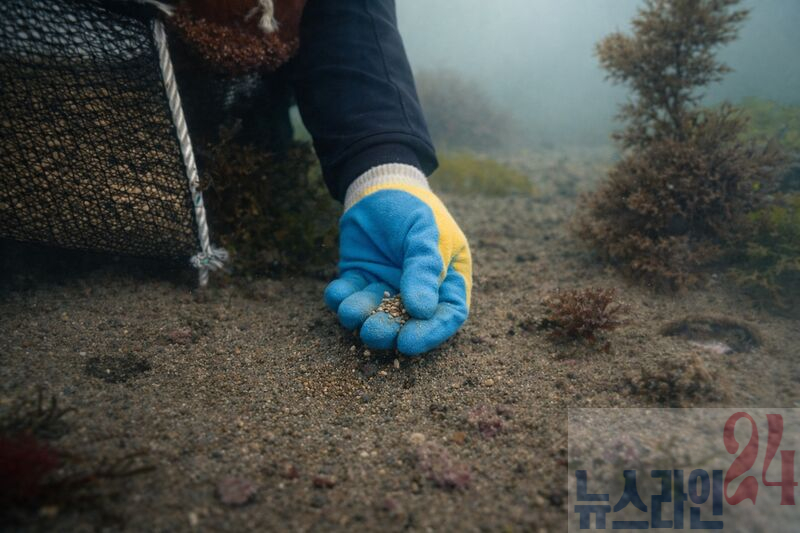 잘피 씨앗을 뿌리는 모습 [완도군]완도군은 잘피 중간 육성장을 조성했다.