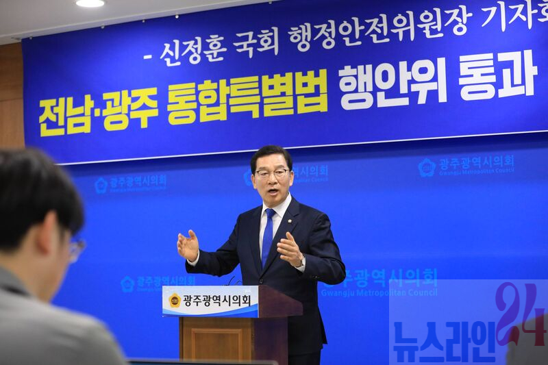 신정훈 국회 행정안전위원장 기자회견신정훈 국회 행정안전위원장은 「전남광주통합특별시 설치를 위한 특별법안」이 국회 행정안전위원회를 통과한 것과 관련해 “3개 권역 동시 심의라는 전례 없는 제약 속에서 도출된 결과”라고 밝혔다.
