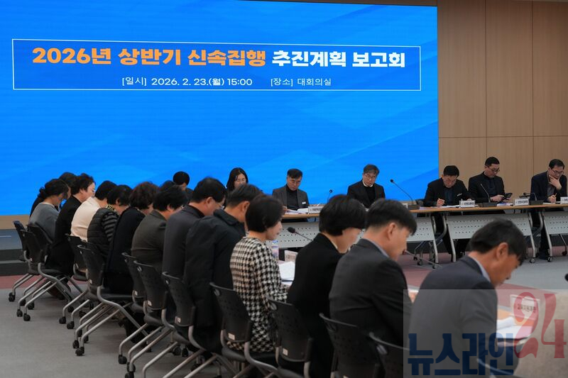 나주시가 지난 23일 대회의실에서 2026년 상반기 신속집행 추진상황 보고회를 개최했다. [나주시]전라남도 나주시가 2026년 상반기 재정 3270억 원을 신속 집행해 민생경제 회복과 지역 상권 활성화의 마중물 역할을 강화한다.