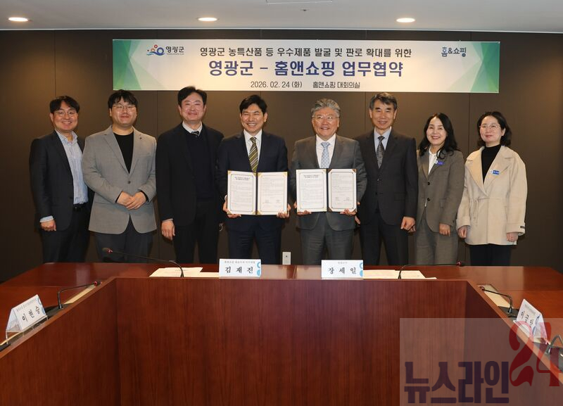 영광군&(주)홈앤쇼핑 업무협약 체결영광군은 지난 24일 ㈜홈앤쇼핑과 영광군의 우수 농특산물 판로 확대와 중소기업·소상공인 우수제품 발굴을 위한 업무협약(MOU)을 체결했다.