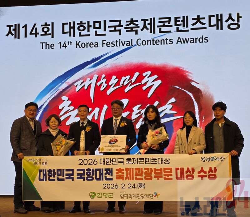 함평군은 “이날 오후 서울 피스앤파크 컨벤션센터에서 열린 ‘2026 대한민국 축제 콘텐츠 대상’에서 함평군이 축제관광부문 대상을 수상했다”고 24일 밝혔다.
