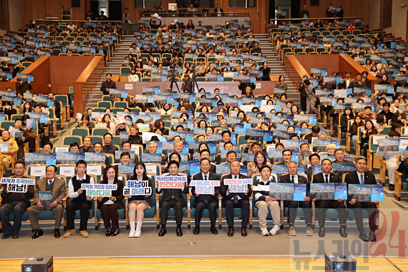 해남군과 해남교육지원청은 27일 해남문화예술회관 대공연장에서‘AI·에너지 수도 도약을 위한 해남미래 선언식’을 개최했다. 이날 행사에는 교육공동체와 주민 등 600여명이 참석해 AI·에너지 수도 도약을 준비하는 미래 비전을 공유했다.
