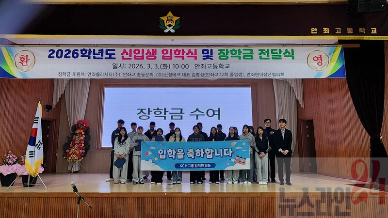3월 3일 안좌초·중·고등학교 2026학년도 입학식에서 KCH그룹(회장 김창휘)은 신입생들을 대상으로 장학금을 전달하고, 안좌초등학교와 장학금 후원 협약을 체결했다.