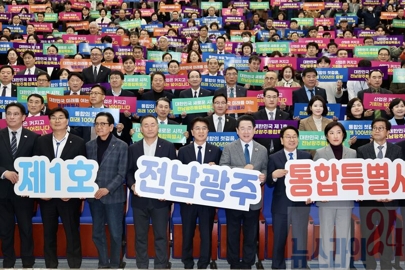 이날 행사에는 전남도의장, 전남도지사, 광주시장, 국회의원, 광주시 부의장 등 주요 인사와 시도민 500여 명이 참석해 전남·광주 행정통합의 역사적 의미를 함께 나눴다.
