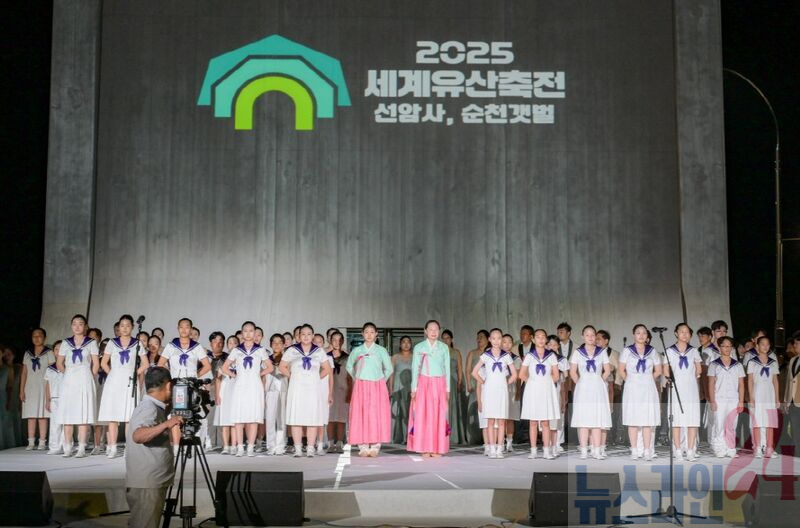 지난해 9월 그린아일랜드에서 열린 '2025 세계유산축전 개막식, 순천시립소년소녀합창단이 오프닝 공연을 하고 있다.순천시가 최근 국가유산청 주관 ‘2025년 세계유산축전’ 성과평가에서 전국 4개 개최지 중 종합 1위를 차지하며 세계유산 도시로서의 위상을 확고히 했다.