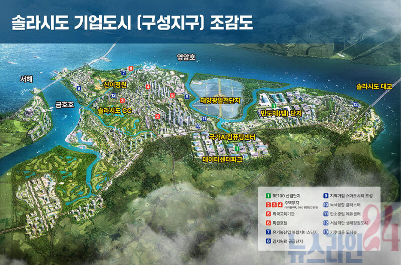 솔라시도 기업도시 조감도컨소시엄은 사업 입지로 해남의‘솔라시도 데이터센터파크’를 제안했다. 해당 부지는 풍부한 재생에너지를 기반으로 한 전력과 용수, 부지 등 기반 공급이 가능해, 대규모 전력이 필요한 AI 데이터센터의 최적지로 평가받았다.