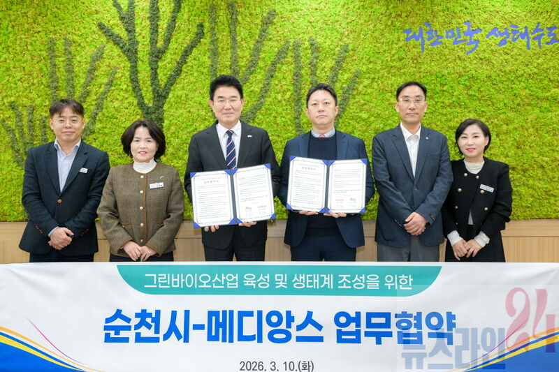이번 협약은 순천시의 생태․정원 자원과 메디앙스의 고도화된 생산‧연구 역량을 결합해, 지역과 기업이 동반 성장하는 지속가능한 산업 모델 구축을 위해 마련됐다.