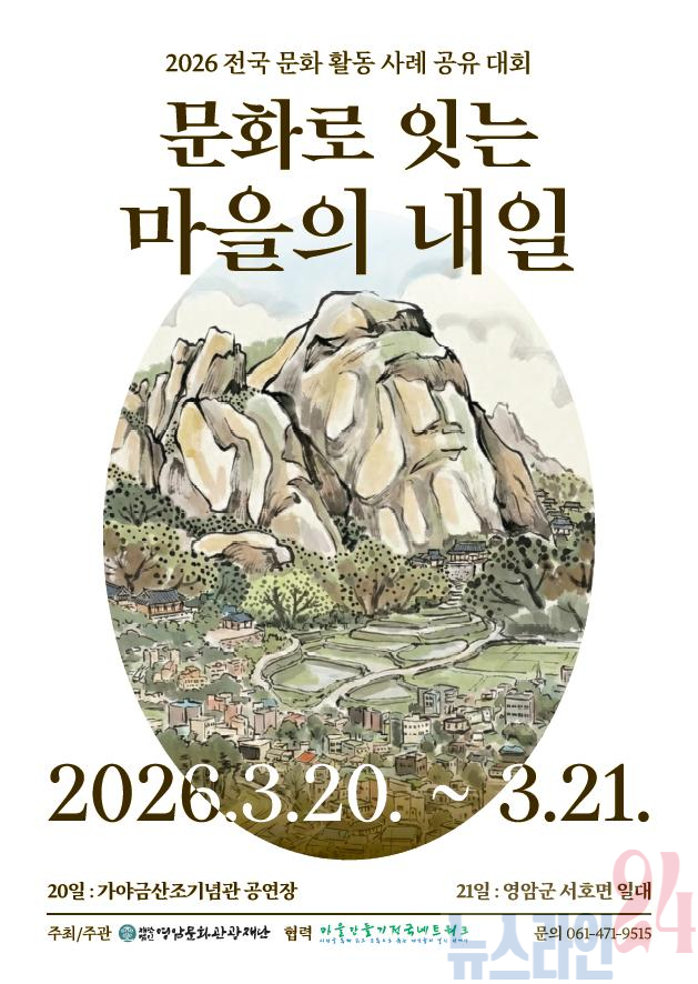 (재)영암문화관광재단은 3월 20일부터 21일까지 영암 가야금산조기념관 공연장에서 2026 전국 문화 활동 사례 공유 대회를 개최한다.