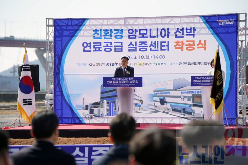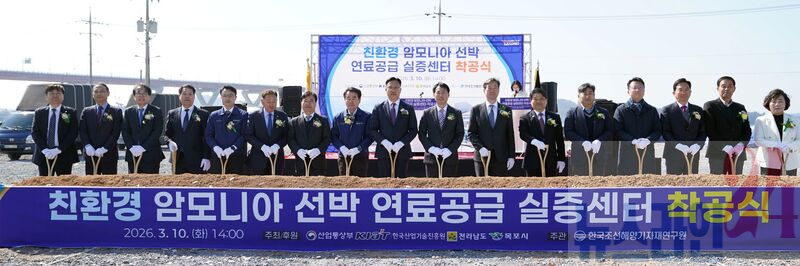 친환경 암모니아 선박 연료공급 실증센터 착공식목포시는 지난 10일, 대양산단 일원에서 지자체, 의회, 대학, 유관기관, 조선․기자재 기업 등 관계자 100여 명이 참석한 가운데 ‘친환경 암모니아 선박 연료공급 실증센터 착공식’을 개최했다고 밝혔다.