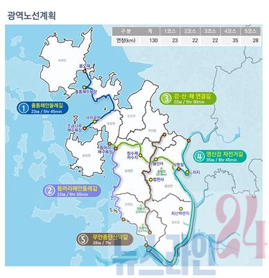 계획에는 9개 읍·면의 특성을 반영한 테마 노선과 군 전역을 연결하는 순환형 보행 네트워크 구축, 관광 거점을 활용한 체류형 보행로 조성 등이 포함됐다. 특히 테마코스길과 광역 노선인 ‘무안 오감 삼백리 길’ 조성 계획이 함께 제시됐다.