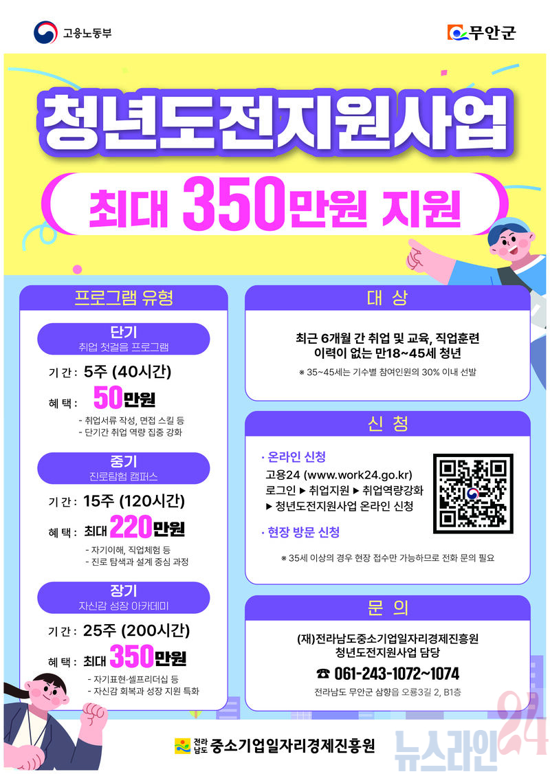 모집은 예산 소진 시까지 상시 진행되며 신청은 고용24 누리집(www.work24.go.kr) 또는 전남일자리종합센터(무안군 삼향읍 오룡3길 2)를 방문해 할 수 있다.