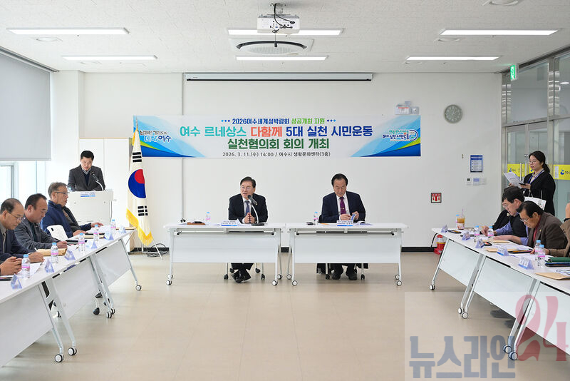 여수시는 지난 11일 생활문화센터에서 ‘여수 르네상스 다함께 5대 실천 시민운동’ 실천협의회 2026년 첫 정기회의를 개최하고 2026여수세계섬박람회 성공개최를 위한 시민 참여 확대 방안을 논의했다고 밝혔다.