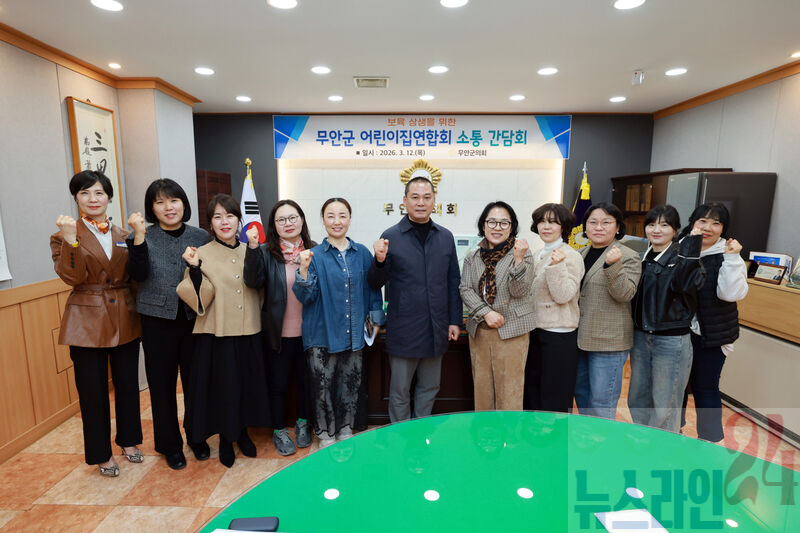 무안군 어린이집연합회 소통 간담회무안군의회(의장 이호성)는 12일 의장실에서 무안군어린이집연합회(회장 신경옥) 임원진과 무안읍 내 어린이집 원장 등이 참석한 가운데 소통 간담회를 개최했다.