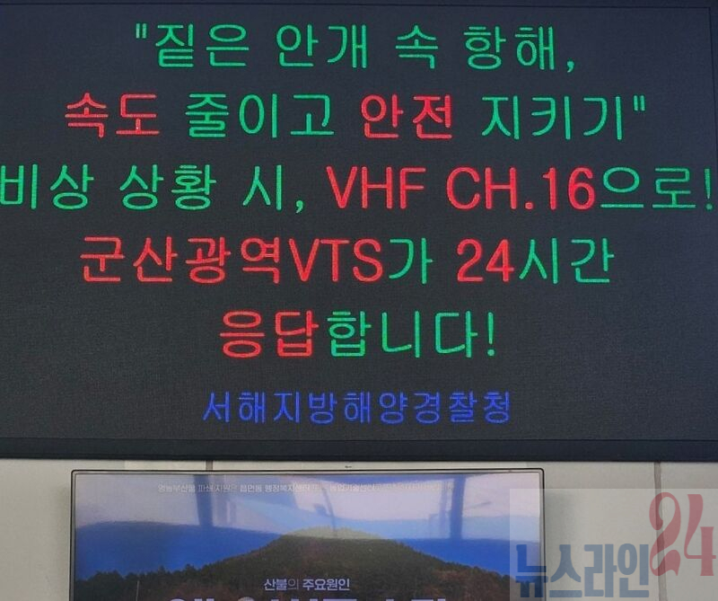 군산연안여객터미널 해양 안전 문구 전광판 표출 사진 [서해해경청]