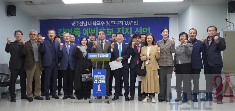 김영록 지지, 광주·전남 교수·연구자 1,071명 동참…“준비된 혁신 행정가” 7일 광주에서…”대통령이 원하는, 길을 아는 통합특별시장“ ”대형 국책사업 유치 등 성과, 통합 제안·설계까지 실력 입증“