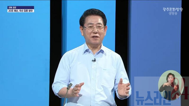 MBC를 통해 광주·전남 전역에 생방송된 이날 토론회는 각 예비후보의 지역발전 비전·정책을 소개하고 자질을 검증하는 자리로, 김 예비후보 외에 강기정·민형배·주철현 예비후보가 참여했다.