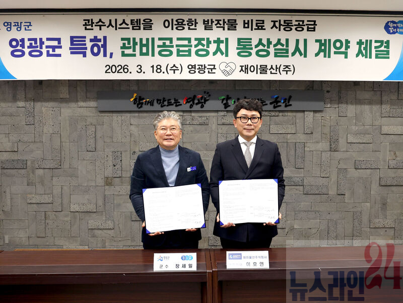 관비공급장치 특허 통상실시권 계약체결영광군은 지난 18일 전북 군산시에 위치한 재이물산(주)과 ‘관비공급장치’ 특허에 대한 통상실시권 계약을 체결했다고 밝혔다.