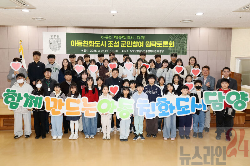 담양군, ‘아이들 목소리로 채우는 담양’ 아동친화도시 원탁토론회 개최담양군은 지난 25일 담양군향촌노인종합복지관에서 아동이 행복하고 살기 좋은 ‘아동친화도시’ 조성을 위한 원탁토론회를 열었다.