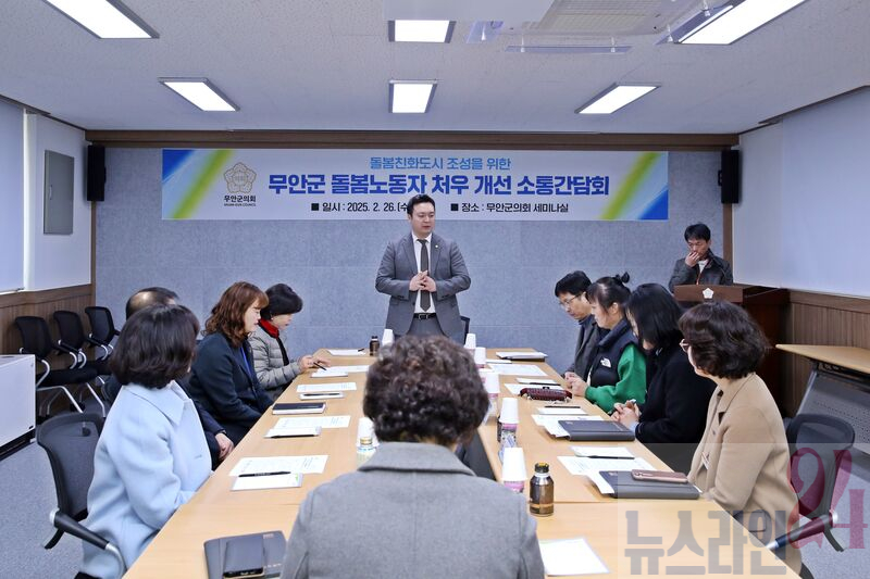 무안군의회 김봉성 의원(행정문화복지위원장)은 26일 군의회 세미나실에서 돌봄노동자의 처우 개선을 위한 소통 간담회를 가졌다.