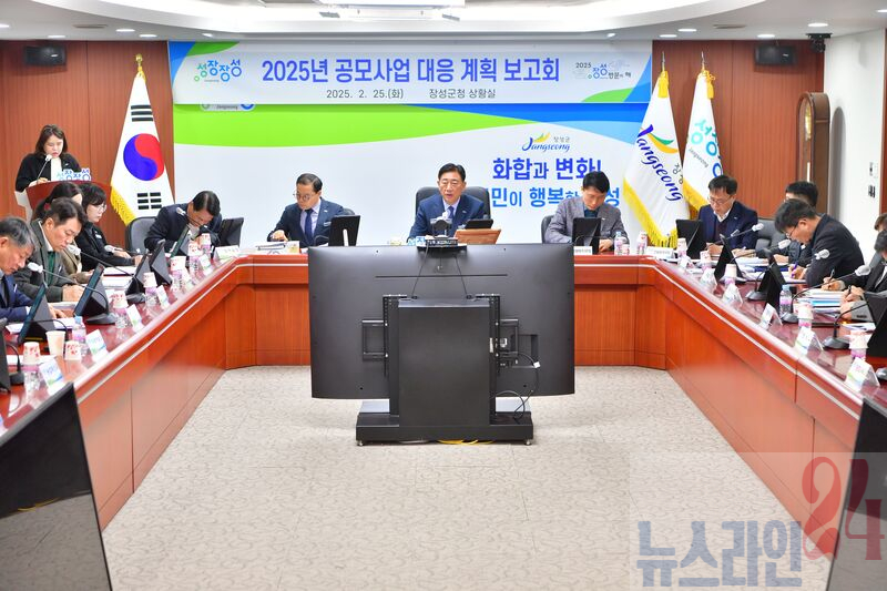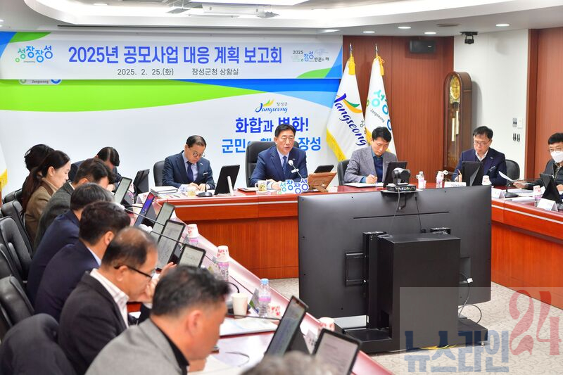장성군이 25일 군청 상황실에서 김한종 군수 주재로 공모사업 대응계획 보고회를 가졌다.