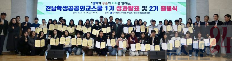 전남미래교육재단(이사장 김대중)이 26일 전라남도교육청교육연구정보원 5층 합동강의실에서 ‘전남학생공공외교스쿨 1기 성과발표회 및 2기 출범식’을 개최했다.