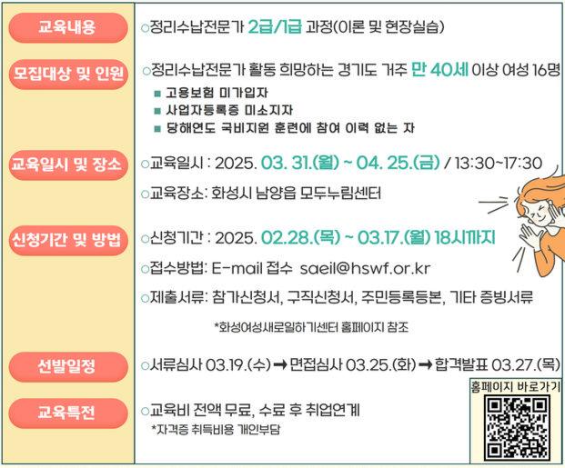 화성여성새로일하기센터, 정리수납전문가 취업특강 교육생 모집