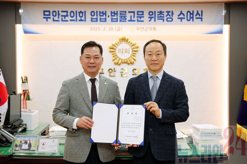 무안군의회(의장 이호성)는 2025년 2월 28일 의장실에서 입법·법률고문 위촉장 수여식을 개최했다.