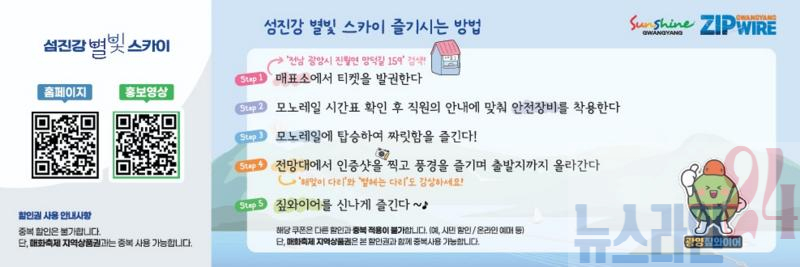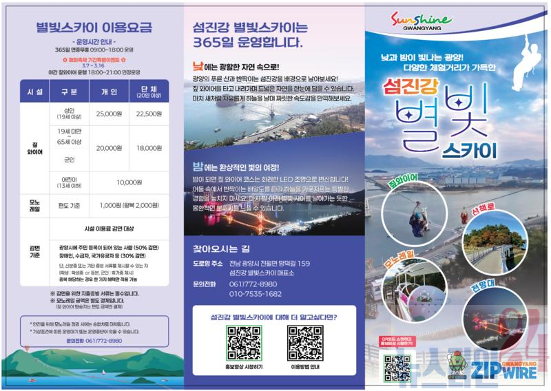 아울러 ‘섬진강 별빛 스카이’는 광양매화축제 입장료에 상응해 환급해 주는 ‘축제상품권’ 공식 사용처이기도 하기 때문에 부담 없이 짚와이어를 즐길 수 있는 절호의 기회다.