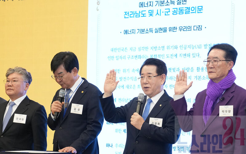 행사에서 전남도와 22개 시군은 태양광·풍력 자원을 활용한 재생에너지 발전수익을 모든 도민과 공유하는 '에너지 기본소득 실현 공동결의문'을 발표했습니다.