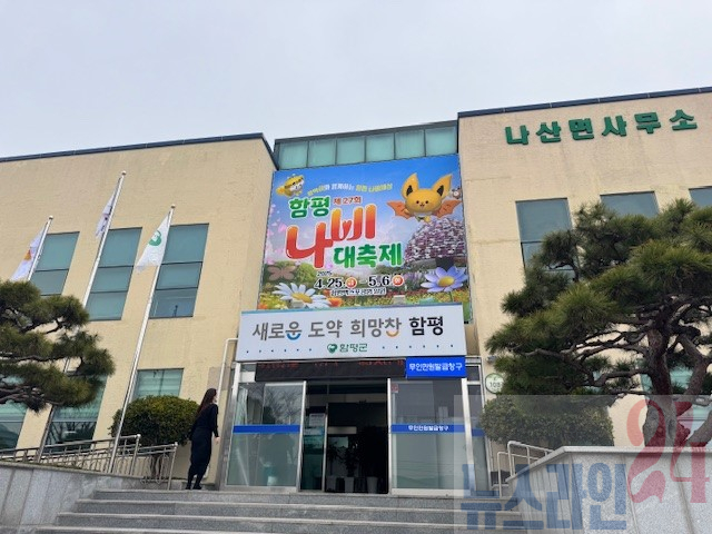 함평군은 11일 “나산면사무소가 지난 10일 청사에 대형현수막을 설치해 지역 주민과 방문객들에게 제27회 함평나비대축제를 알리며 관심과 참여를 장려하고 있다”고 밝혔다.