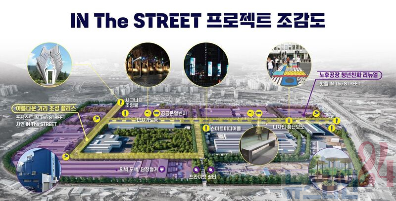 또한, ‘노후공장 청년 리뉴얼 사업’으로 청년근로자들의 에너지가 가득한 핫플거리(핫플 IN The STREET)를 조성한다. 노후공장 청년 리뉴얼 사업은 기업들에 대한 직접지원사업으로 담장정리, 건물 외벽도색, 프라이빗 쉼터 등을 지원한다.