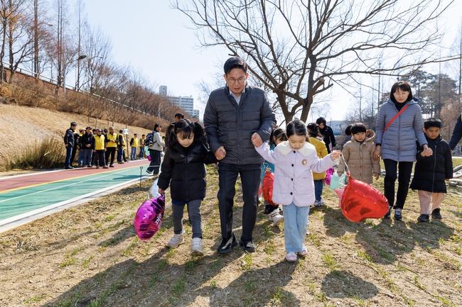 마포구(구청장 박강수)는 3월 19일 오후 2시 월드컵천에 식재한 청보리가 더욱 튼튼하게 성장하고 아이들이 자연과 함께하는 특별한 순간을 만끽할 수 있도록 어린이집 원아들과 함께하는 보리밟기 행사를 진행했다.