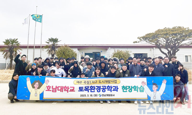 전남개발공사는 3월 18일 여수시 소라면에 위치한 죽림1지구 조성사업 공사현장을 방문한 호남대학교 토목환경공학과 교수진과 학생 약 50여 명을 대상으로 기술역량강화를 위한 현장학습을 실시했다.