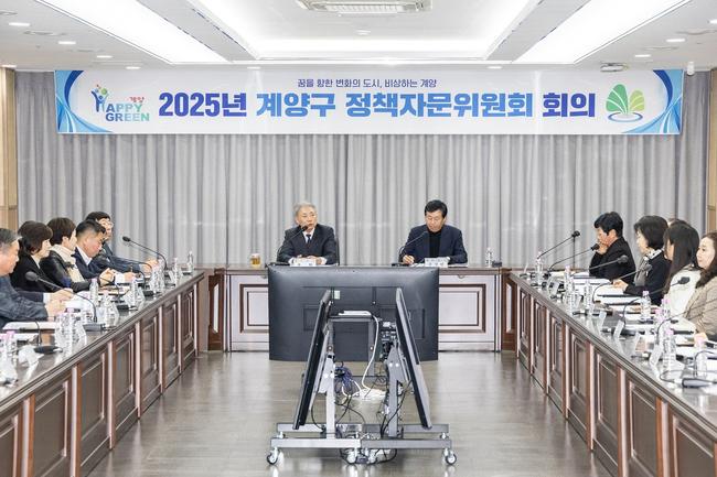 인천광역시 계양구(구청장 윤환)가 구정 주요 현안과 정책과제에 대한 각계 전문가의 의견을 수렴하고 발전 방향을 모색하기 위해 19일 구청 영상회의실에서 `2025년 제1회 정책자문위원회`를 개최했다.