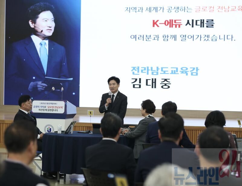 전라남도교육청(교육감 김대중)이 20일 청사 대회의실에서 ‘공생의 가치로 글로컬 전남교육, 자신있게 실현합니다’를 주제로 정책협의회를 개최했다.