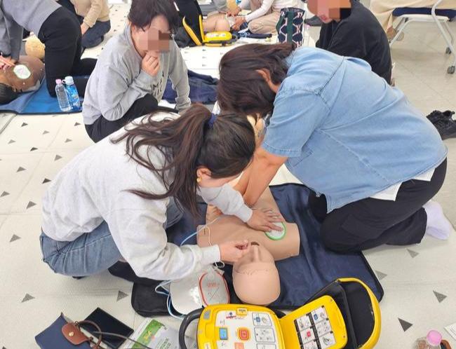 교육내용으로는 영유아 및 성인에게 발생할 수 있는 기도폐쇄에 의한 질식사고와 심폐기능 정지 시 응급처치 방법과 자동심장충격기(AED) 사용방법 및 주변 비치 장소에 안내에 대한 교육이 진행됐다.