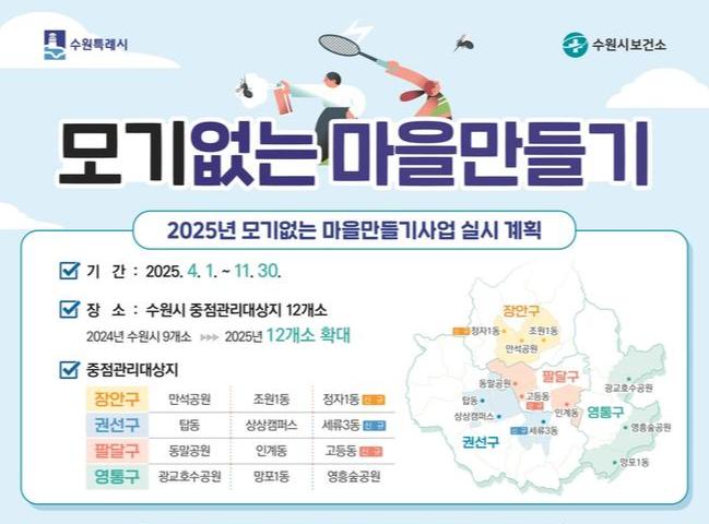수원시, `모기 없는 마을만들기` 사업 대상지 12개소로 확대한다
