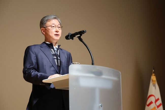 장인홍 구로구청장이 3일 오전 구로아트밸리 예술극장에서 열린 직원 정례조례에서 취임 인사를 하고 있다.