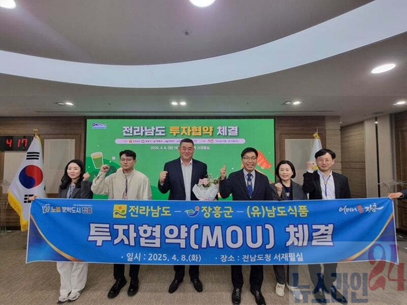 장흥군은 8일 전남도청 서재필실에서 (유)남도식품과 120억 원 규모의 투자협약을 체결했다고 밝혔다.