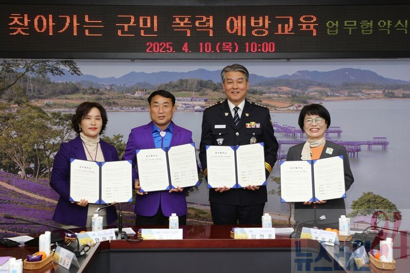 신안군은 10일 신안군청 영상회의실에서 신안경찰서, 전남여성가족재단), 신안군여성단체협의회와 함께 ‘찾아가는 군민 폭력 예방교육’추진을 위한 업무협약을 체결했다.
