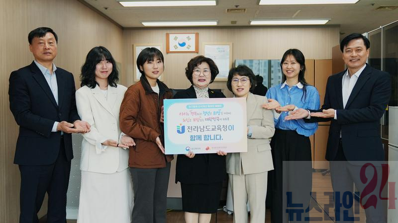 전남교육청 심치숙 교육자치과장과 직원들이 14일 저출생·고령화에 따른 학령인구 감소 문제를 알리고 사회적 인식을 제고하기 위한 ‘인구문제 인식 개선 릴레이 캠페인’에 동참했다.