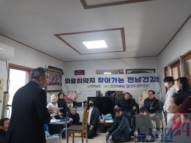 찾아가는 전남건강버스 사업은 진도군보건소 방문보건 전담팀과 강진의료원 인력이 의료 접근성이 낮은 의료 취약지역 중 65세 이상 인구 비율이 높은 경로당을 방문해 순회진료 하는 사업이다.