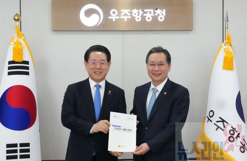 김영록 전라남도지사가 16일 오후 경남 사천 우주항공청을 방문, 윤영빈 우주항공청장과 면담을 갖고 ‘제2우주센터 고흥 나로우주센터 인근 유치’ 및 ‘사이언스 콤플렉스 예비타당성조사 대상 사업 선정 협력’ 등 도 현안 해결을 위한 건의 및 협조를 요청하고 있다.