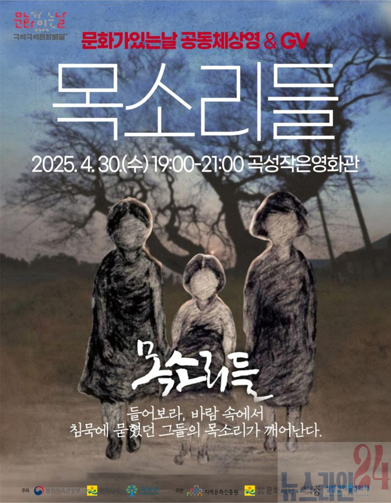 4월 30일에 열리는 구석구석 문화배달 행사는 곡성작은영화관에서 주민이 함께 시청하는 공동체 영화“목소리들”을 상영한다. 제주 4.3을 여성의 시각으로 바라본 다큐멘터리 영화로 제주 여성들의 경험, 침묵 속에 잠겨있던 그들의 목소리를 세상 밖으로 끌어낸다.