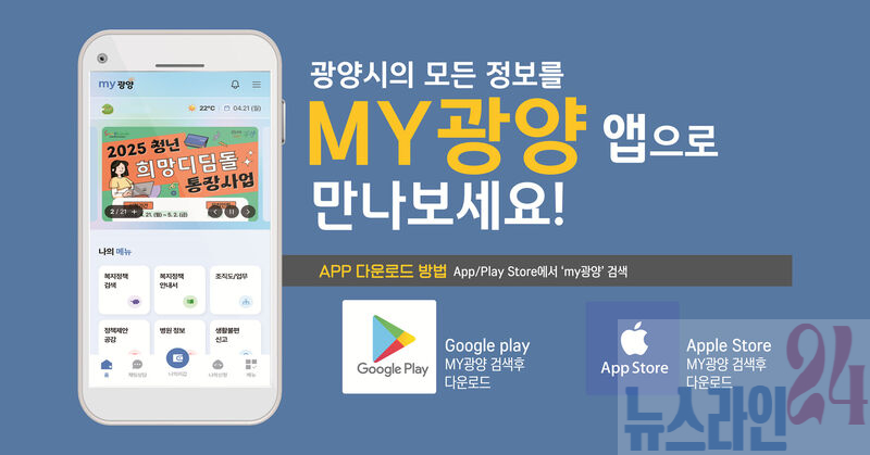 광양시가 전국 최초의 원스톱(One-stop) 통합행정 플랫폼인 광양시 모바일 앱(App) ‘MY광양’을 개발해, 4월 22일부터 시범운영 서비스를 시작한다고 21일 밝혔다.