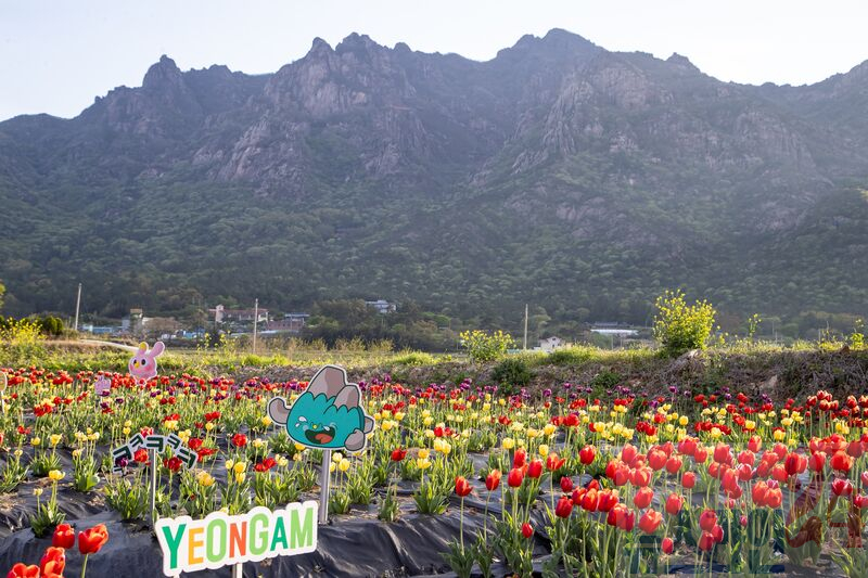 지난해 축구장 1/3 크기의 이 자리에 가을 댑싸리 단지를 가꿔 영암의 새 풍경을 선사한 영암군이, 올봄 상춘객을 위해 지난해 12월 린반덴마크 등 6종의 튤립, 8,000본을 심었고, 현재 그 꽃이 절정을 이루고 있다.