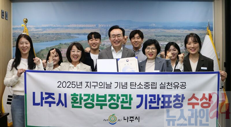 전라남도 나주시(시장 윤병태)는 2025년 기후변화주간(4월 21일~25일)을 맞아 지구의 날 기념 탄소중립 실천에 기여한 공로로 지난 21일 전국 지자체 중 유일하게 환경부장관상을 수상하는 영예를 안았다.