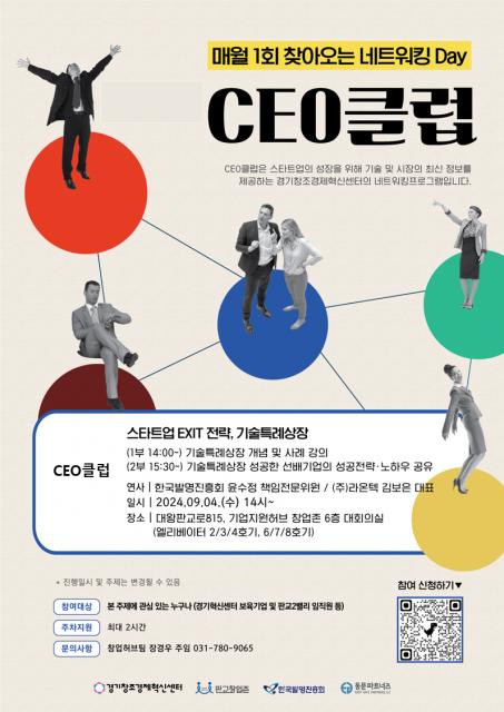 경기창조경제혁신센터(센터장 김원경, 이하 ‘경기혁신센터’)는 판교 창업존 대표 교육·세미나 프로그램 ‘2024 CEO클럽’을 성공적으로 마무리했다고 밝혔다.